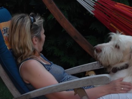 Dieses Wochenende hatte ich Besuch aus Bayern. Ich glaube, Christine war hauptsächlich wegen mir gekommen, denn sie war sehr anhänglich. Hier haben wir uns den Liegestuhl geteilt.