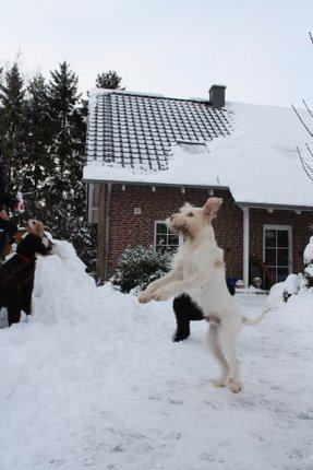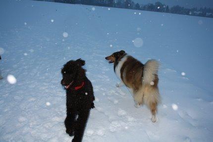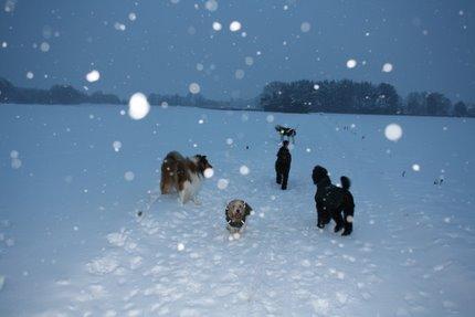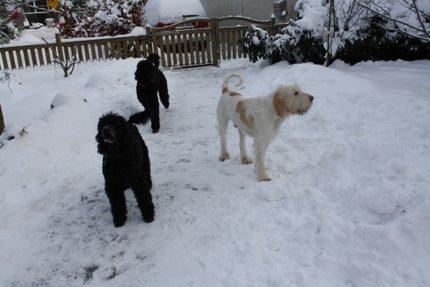 Heute sind Robby und Nico zu Besuch gekommen. Die feiern dieses Jahr mit uns Weihnachten. Nach dem wir uns alle Neuigkeiten erzählt hatten, sind wir zusammen mit Lenny spazieren gegangen. Es hat heute wieder mächtig geschneit!