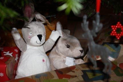 Und dann war es endlich soweit! Der Weihnachtsmann war da!!!! Und die Jungs riefen ganz aufgeregt "Osterhasen für uns!!!" Aber da hatten sie nicht richtig hingeschaut: auf dem linken Hasen stand nämlich "Lotte" und auf dem rechten Hasen "Paul"! Also Osterhasen für UNS!!! Ja, und jetzt weiß ich, dass Caro mich einfach nicht ernst nimmt! Letztes Jahr dachte ich ja noch an ein Kommunikationsproblem zwischen uns beiden, aber da es dieses Jahr wieder nur einen Stoffhasen gab, ist die Lage klar wie Kloßbrühe. Ich denke, ich muss mich in nächster Zeit mal selbst um einen echten Hasen kümmern.
