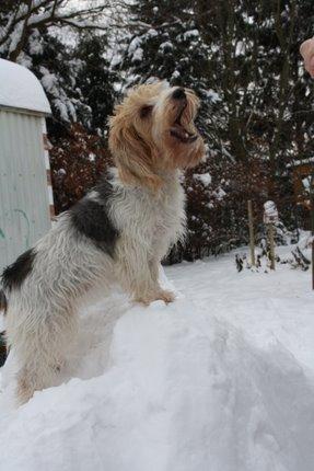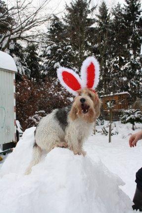 ... darauf meinte Lotti, sie würde die Mütze gerne nehmen, denn ihre Ohren wären schon wieder ganz kalt. Kein Wunder - diie schleifen ja auch im Schnee! Manchmal hat sie am Ende des Spaziergangs kleine Eiszapfen an den Ohren.