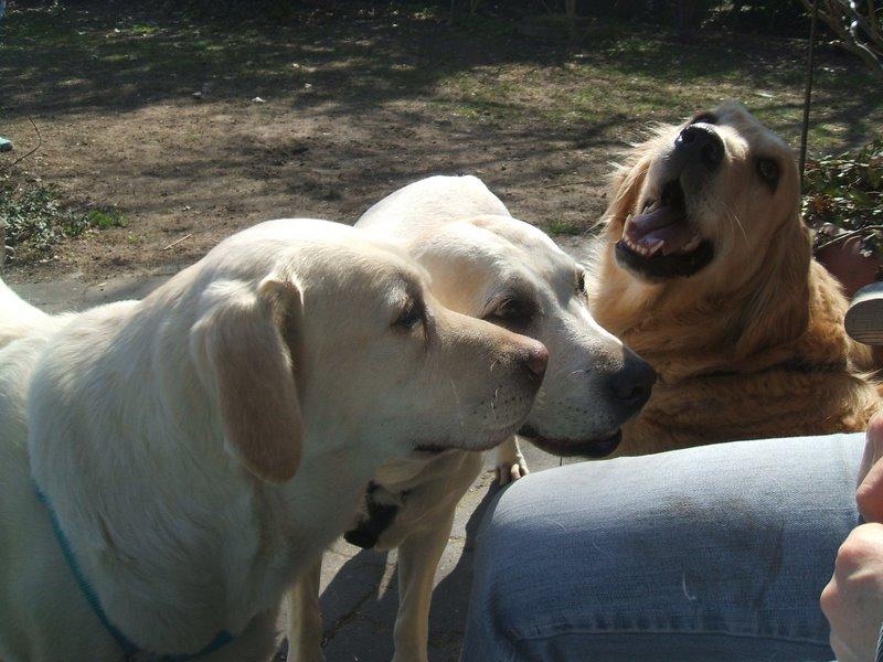 Heute waren Sally, Kais, Resi, Regina und Amber wieder zu Besuch. (Von links nach rechts aufgezählt.) Kais ist der neue Pflegehund von Regina und sucht eine neues Zuhause. Amber ist nicht mehr zu vermitteln. Sie bleibt bei Regina! Darüber freue ich mich besonders, denn in die süße Schnecke hatte ich mich ja sofort verliebt! Jetzt kann ich sie öfter sehen und darüber freue ich mich sehr!