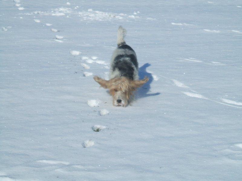 Heute Vormittag haben wir einen schönen Spaziergang in der Sonne gemacht. Ich hatte zwar kein Frühstück heute und mein Magen hat dauernd geknurrt, aber Caro meinte, ich habe mir irgendwas eingefangen und darf darum heute nix essen. Ok, ich hatte mich seit gestern einige Male übergeben, aber Hunger hatte ich doch trotzdem! Zum Hundeplatz durfte ich deswegen heute auch nicht. Echt blöd!