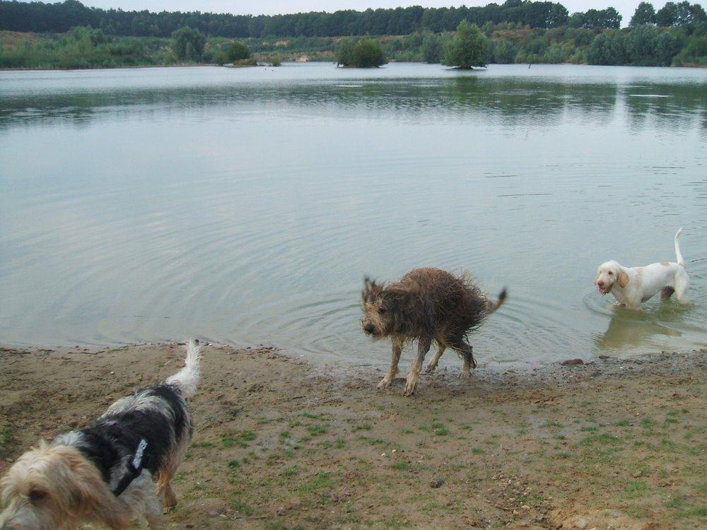 Heute hatte ich einen richtig tollen Tag: morgens war ich mit Lotte & Lenny im Wald und nachmittags war ich mit Lotte, Caillou, Emma & Sunny zuerst am Kiesteich, dann haben wir eine große Runde durch den Wald gemacht und zum Abschluß durften wir alle nochmal im Kiesteich baden. Abends habe ich dann noch ein wenig im Garten gespielt, bevor ich dann hundemüde in mein Bett gefallen bin.
