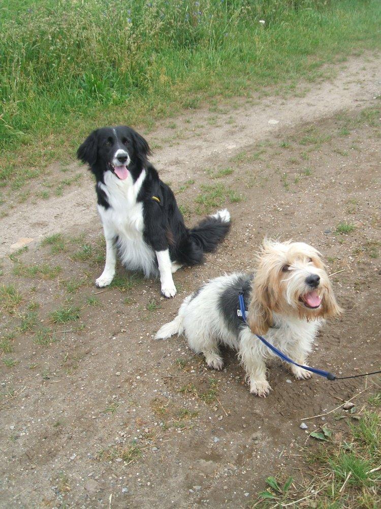 Und als wir wieder Zuhause waren, habe ich erstmal eine Jacken-Kontrolle gemacht. Während der Besuch auf der Terrasse saß, habe ich aus Brigittes Jacke (die auf der Bank vorm Haus lag) eine Ladung Leckerlis befreit. - Die haben auch ganz deutlich gerufen: "komm her und fress uns auf!" Caro hat das natürlich wieder nicht geglaubt, aber Brigitte fand das völlig ok. Brigitte ist echt cool! Ich hoffe, die kommt jetzt öfter zu Besuch! Die freut sich auch immer, wenn ich ihr zur Begrüßung um den Hals falle.