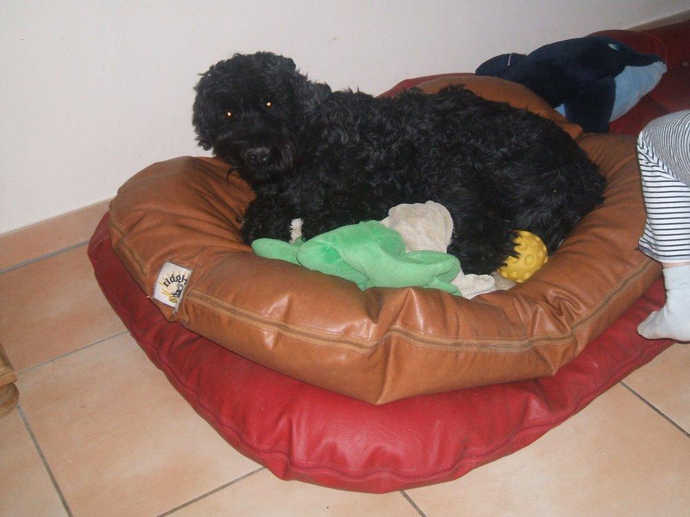 Janosch wollte es heute mal besonders bequem haben. Aber vielleicht konnte er auch einfach nicht abwarten, bis der frisch gewischte Fußboden wieder trocken war.