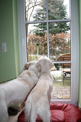 Heute früh habe ich mit Franzi zusammen Eichhörnchen-TV geschaut.