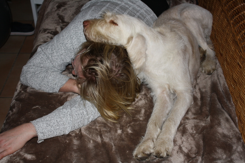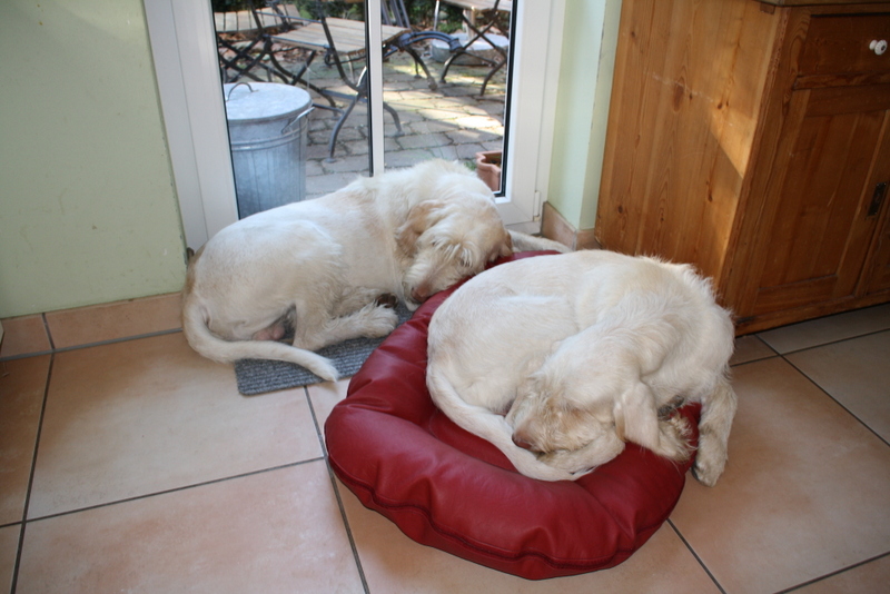 ... leider habe ich den Fehler gemacht und bin mal kurz was Trinken gegangen: als ich zurück kam, war das komplette Sofa belegt! Und beide haben fest geschlafen. Hätte ich das geahnt, hätte ich mir das Trinken verkniffen! Ich musste ewig warten, bis die 2 mal die Augen aufgemacht haben und mich wieder mit aufs Sofa gelassen haben.