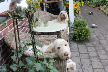Dieses Wochenende hatte ich Besuch aus Bayern. Ich glaube, Christine war hauptsächlich wegen mir gekommen, denn sie war sehr anhänglich. Hier haben wir uns den Liegestuhl geteilt.