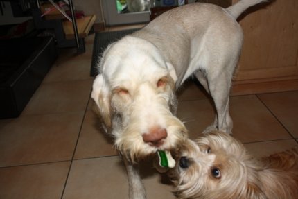 Seit Samstag haben wir Besuch vom kleinen Lenni. Seit dem bin ich bei Franzi abgeschrieben. Die Beiden spielen ununterbrochen und teilen inzwischen sogar ihre Beute! Ich kann es nicht fassen! Dieser kleine Wicht hat es faustdick hinter den Ohren!