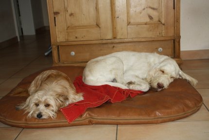 Ich frage mich, wozu Lenni extra ein Gästebett bekommt, wenn er sowieso immer bei Franzi im Bett schläft.