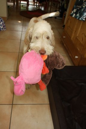 Der Handtuchhund hat Lotte Gesellschaft geleistet.