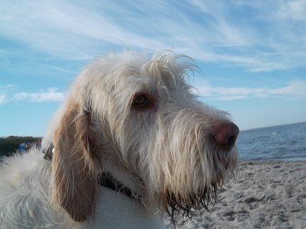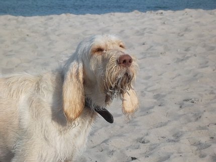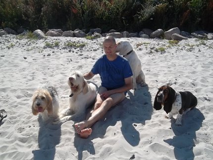 Kaum hatten wir uns ein Plätzchen am Hundestrand von Pottloch gesucht, haben wir Archibald kennengelernt. Archi ist ein Basset und zwar die sportliche Ausführung dieser Rasse. Er ist sehr gemütlich und total stur - mir war er mit diesen Eigenschaften auf Anhieb sympathisch.