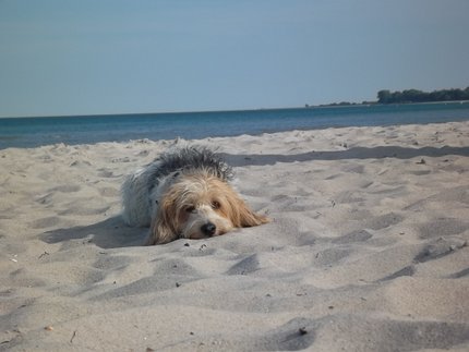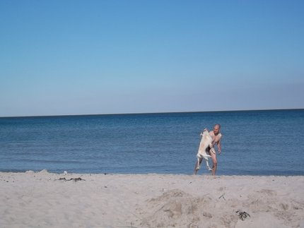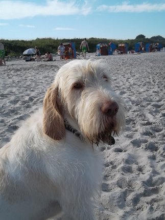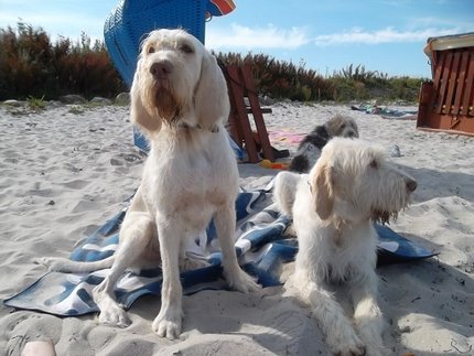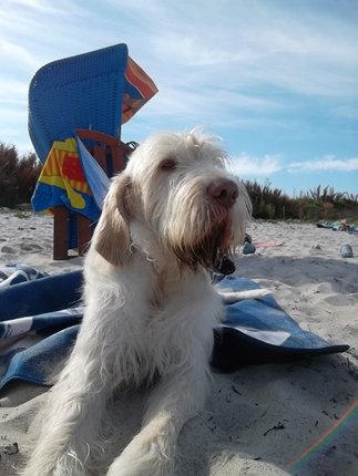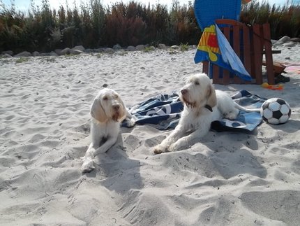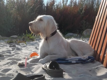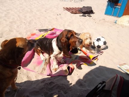 Nach 2 Tagen habe ich dann ein Revier abgesteckt und den anderen Hunden klar gemacht, wie weit sie an unsere Sachen ran dürfen. Also gegen unseren Strandkorb hat keiner gepinkelt! Und gegen penetrantes Bespringen hübscher Hundedamen durch prollige Rüden bin ich auch vorgegangen. Einer musste schließlich für Ordnung sorgen. Und das hat super funktioniert!