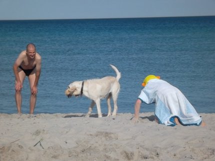 Außerdem muss ja einer auf die Sachen aufpassen, wenn immer alle ins Meer rennen! Und ich bin da doch der Zuverlässigste von Allen und nehme diesen Job absolut ernst!