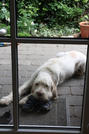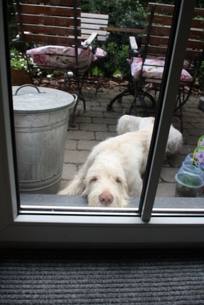 Heute hatten wir schönes Wetter, da haben wir im Garten Mittag gegessen. Anschließend haben sie mich draußen vergessen.