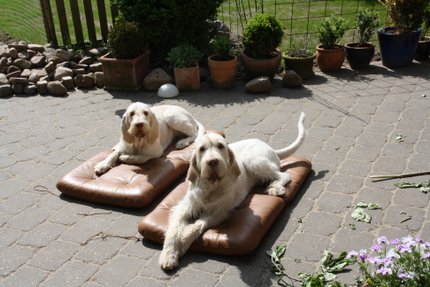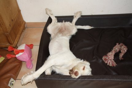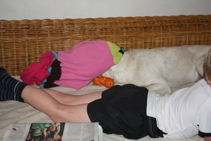 Franzi war dann eifersüchtig und hat sich die Decke über den Kopf gezogen, damit sie sich das Elend nicht ansehen muss. Wenn sie Lenny küssen will, dreht er sich nämlich immer weg.