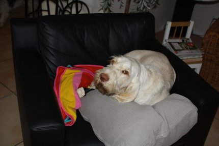 Ich weiß genau, dass sie nicht auf diesen Sessel darf! Aber Franzi hat gesagt "Halt die Klappe und geh weiter, Paul."