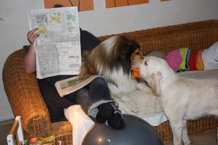 Heute war mein alter Kumpel Lenny zu Besuch und die beiden Weiber haben sich entsetzlich angebiedert! Franzi hat ihm sämtliche Geschenke gebracht...