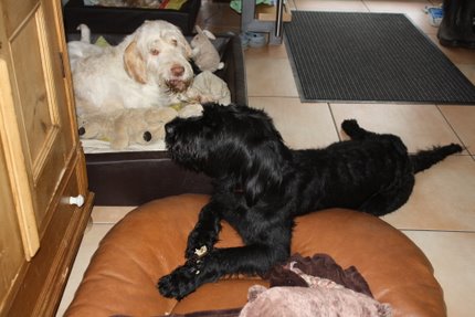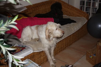 Es wird eng auf meinem Sofa: Robby ist zu Besuch und heute hat er sich ohne zu fragen auf mein Sofa gelegt. Ich war empört! Caro meinte, ich soll mich nicht so anstellen, da passen locker 3 Hunde drauf. Ja, ja, aber darum geht's doch gar nicht! Es ist MEIN Stammplatz!