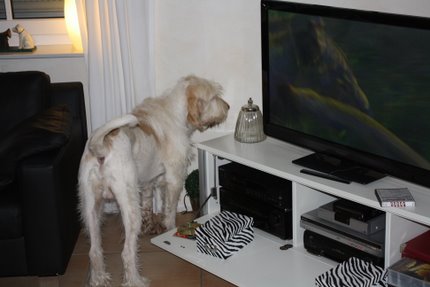 Der Hund ist nach links gelaufen und dann war er plötzlich weg. Und hinterm Fernseher war er auch nicht. Sehr merkwürdig!!!