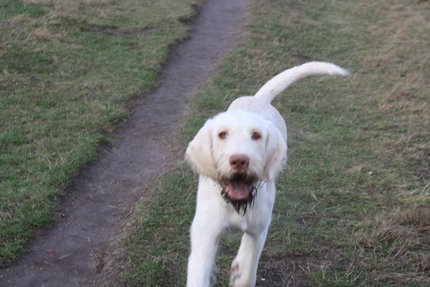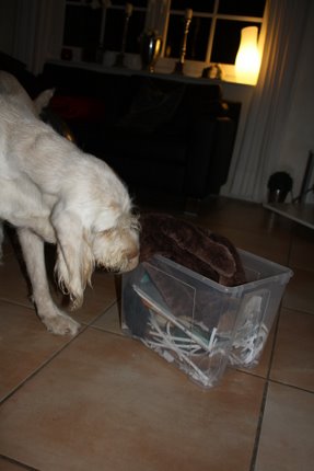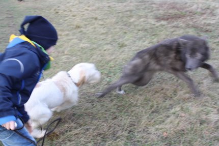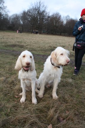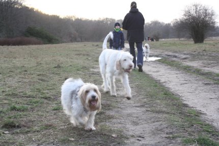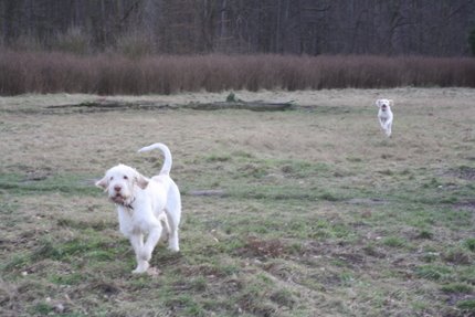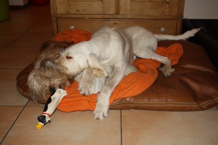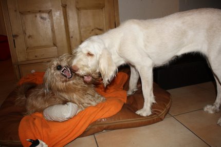 Lotte fand die doof. Aber sie war bestimmt nur wieder eifersüchtig, die kleine Diva. Lotte behauptet allerdings, dass sie keineswegs eifersüchtig wäre. Sie hätte nunmal eine Welpen-Allergie und würde sie deswegen meiden... So'n Blödsinn habe ich noch nie gehört! Naja, ich finde Welpen jedenfalls toll! Und wenn dann noch Spinone drin ist sowieso!