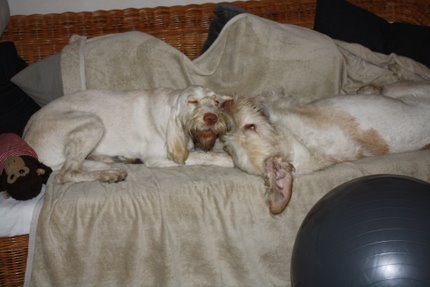 Heute wollte Franzi sich nicht von mir pflegen lassen. Sie hat den halben Tag mit dem Hasen auf dem Sofa rumgelegen.