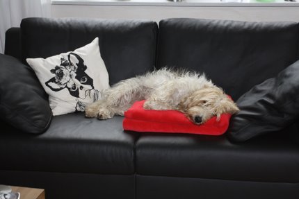 Wie hingegossen lag Lotti da. Sie sucht sich immer den besten Platz aus, die kleine Diva.