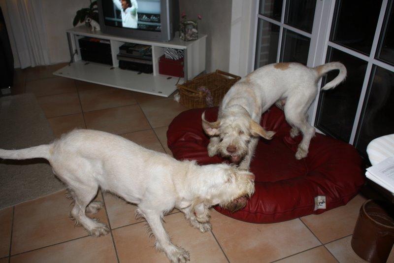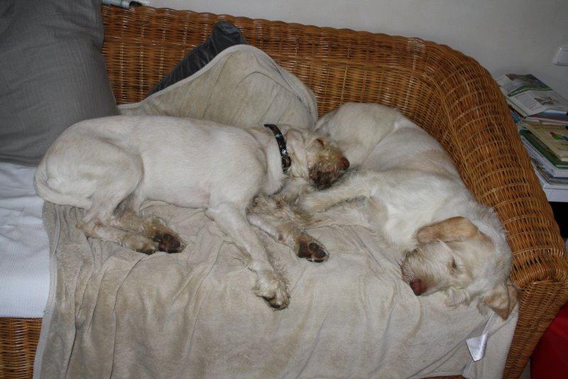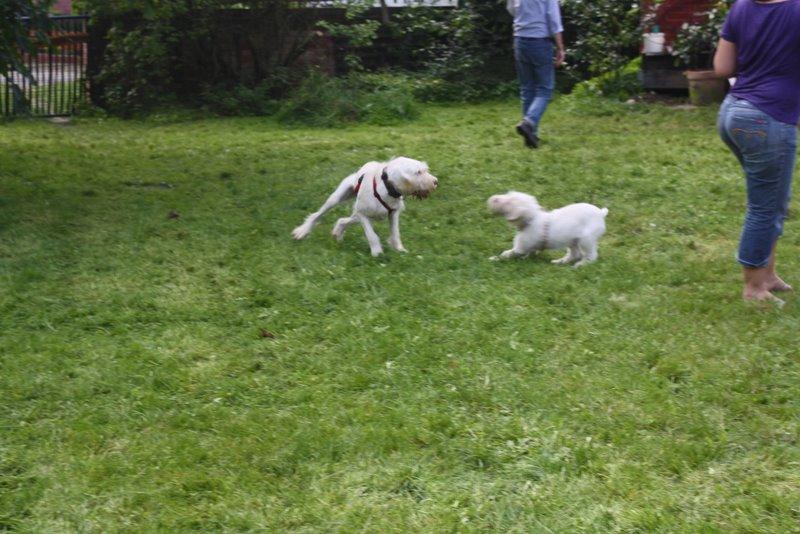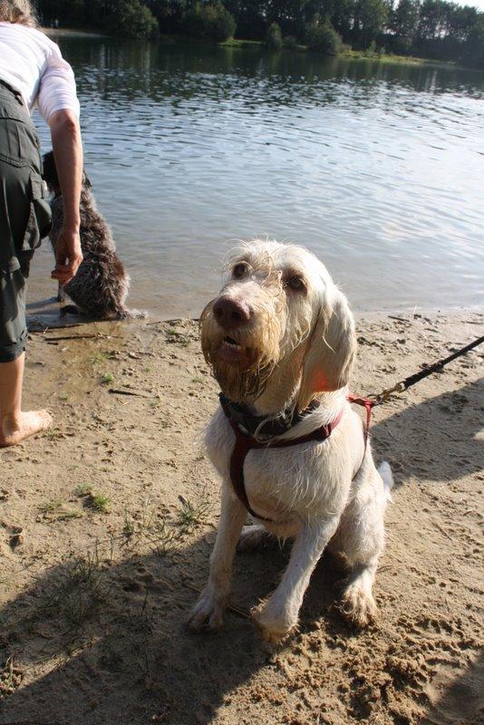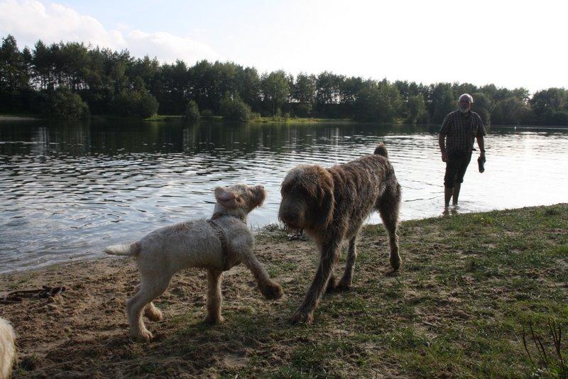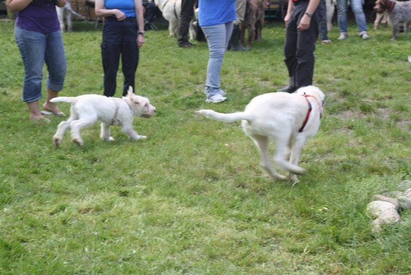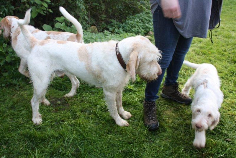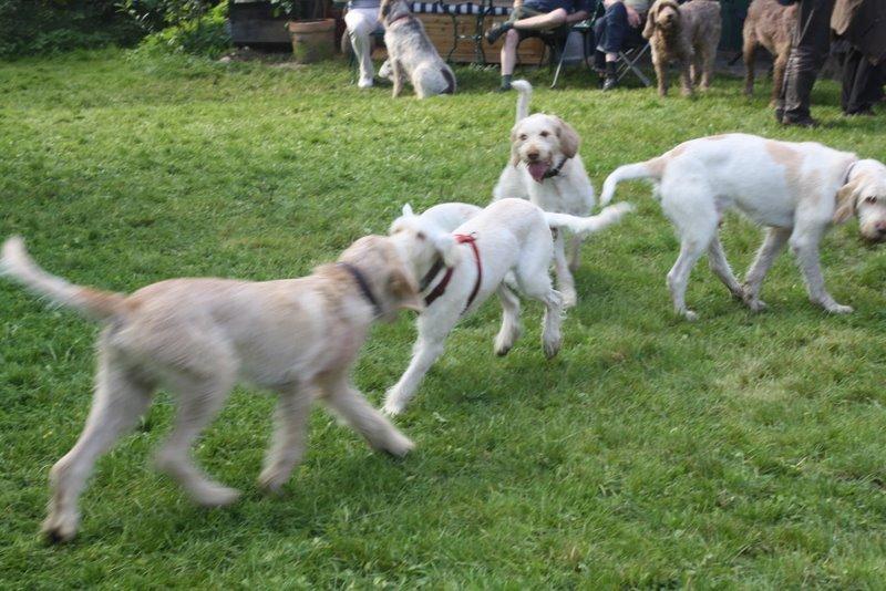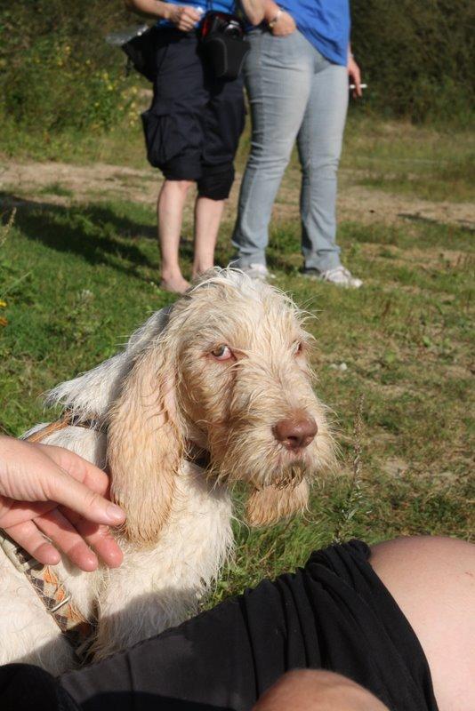 Heute waren wir ins Wendland gefahren, um uns mit einigen Kumpels zu treffen. Franzi war total überwältigt. So viele Spinoni auf einem Haufen hat sie noch nie gesehen.