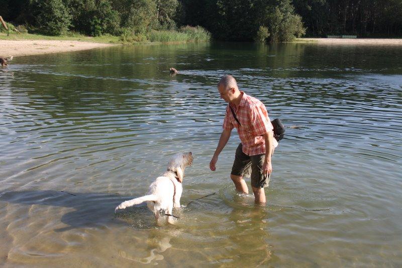Nachdem wir im Garten ausgiebig gespielt hatten, sind wir an einen ganz tollen Kiesteich gefahren. Der war noch schöner, als mein Kiesteich!