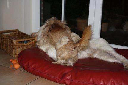 Da habe ich meinen Stammplatz mal kurz verlassen und schon liegt Lenni drauf. Der traut sich was!