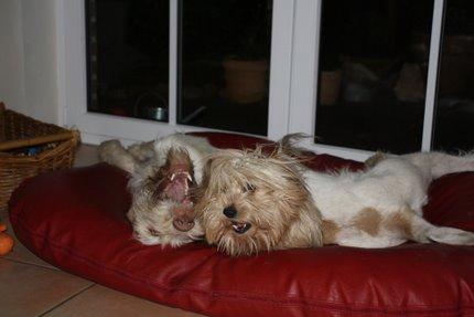 Lenni hat behauptet, dass er bei sich Zuhause auch auf's Sofa darf. Daraufhin habe ich ihm ein bisschen Platz gemacht.