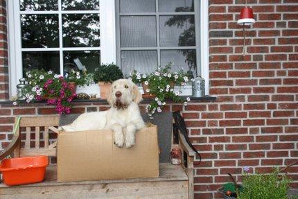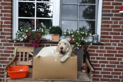 Wir hatten schon tief und fest geschlafen, da kamen Maria und Lars, um meine neuen Mitbewohner wieder abzuholen. Leider! Es war so schön mit Enzo und Keeke! Ich hoffe, die besuchen uns bald wieder! Ansonsten muss ich meine Familie davon überzeugen, dass wir dringend einen eigenen zusätzlichen Spinone brauchen.