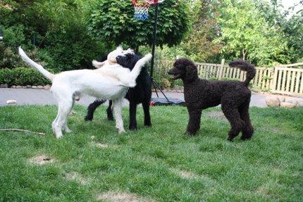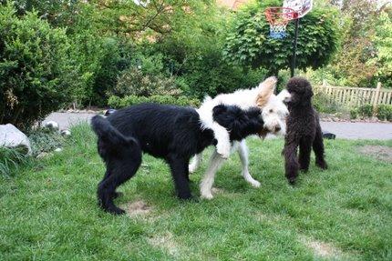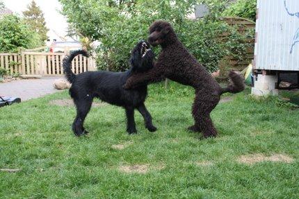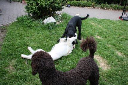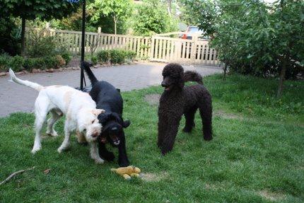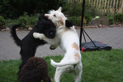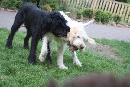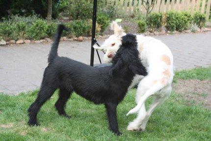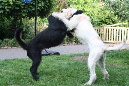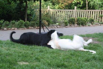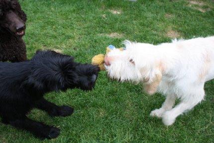 Hier spielt Robby den Schiedsrichter beim Tauziehen - äh Stofftierziehen...