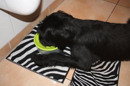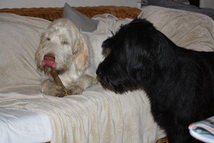Ich bin ein absoluter Gentleman: hier habe ich Paula ihren Betthupferl vorgekaut. Sie durfte heute nämlich bei mir übernachten. Lotte, Paula, Robby und ich haben eine Schlafparty gemacht!