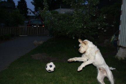 Nach der blöden Ohren-Attacke haben wir noch eine Runde Ball gespielt. Ich war heute richtig gut in Form!