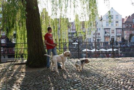 Hier sind wir mitten in der Stadt, an der Ilmenau (so nennen sie das Wasser da unten. Soll ein Fluß sein - für mich ist es ein großes Entenfrischhaltebecken). Es ist wirklich schön hier! Und hier gibt es so tolle Enten! Aber wir durften mal wieder nur gucken!