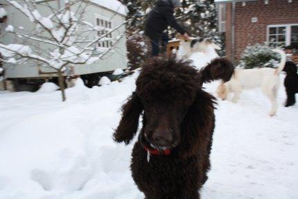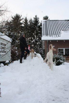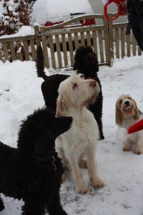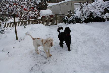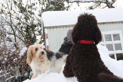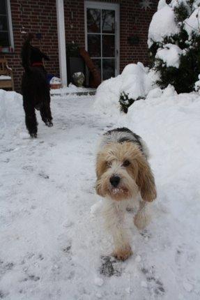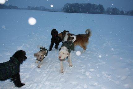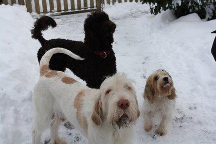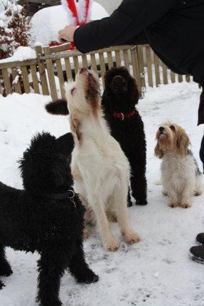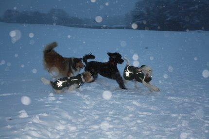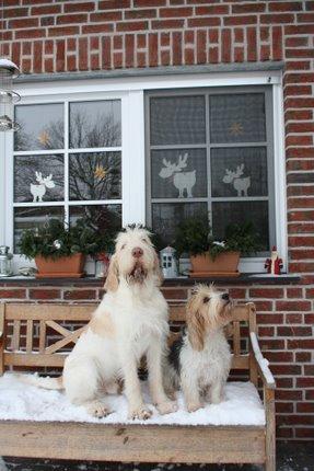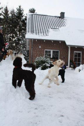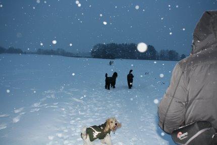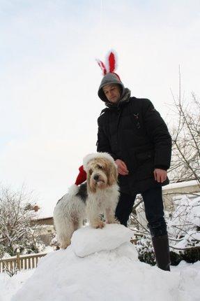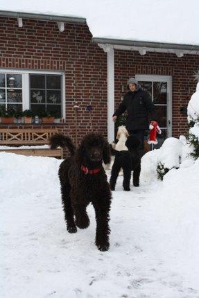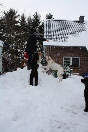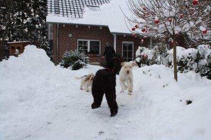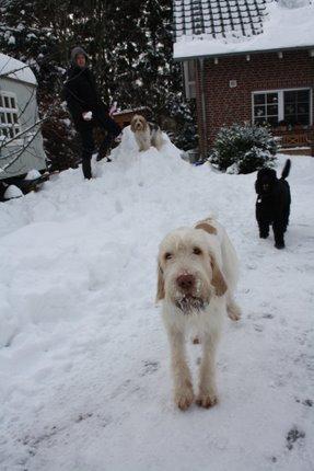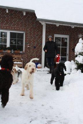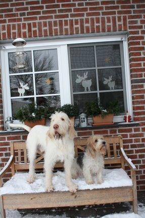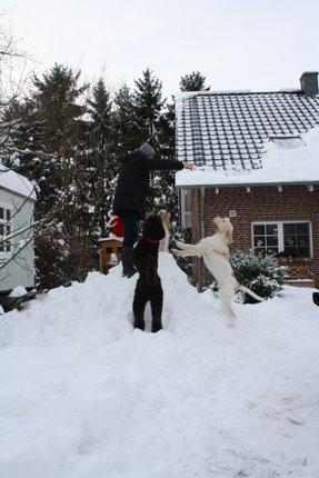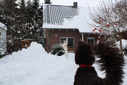 Heute sind Robby und Nico zu Besuch gekommen. Die feiern dieses Jahr mit uns Weihnachten. Nach dem wir uns alle Neuigkeiten erzählt hatten, sind wir zusammen mit Lenny spazieren gegangen. Es hat heute wieder mächtig geschneit!