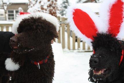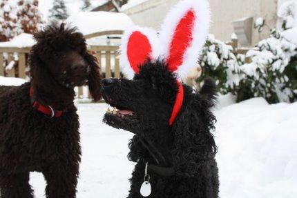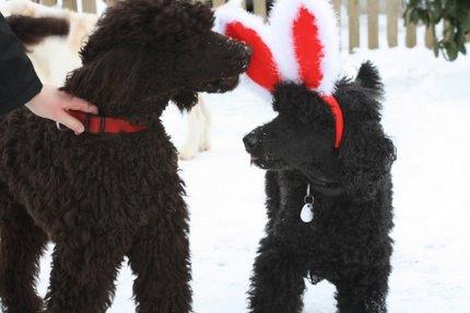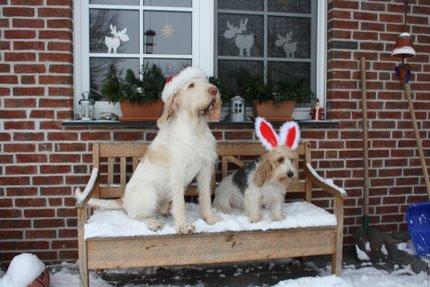 Und dann war es endlich soweit! Der Weihnachtsmann war da!!!! Und die Jungs riefen ganz aufgeregt "Osterhasen für uns!!!" Aber da hatten sie nicht richtig hingeschaut: auf dem linken Hasen stand nämlich "Lotte" und auf dem rechten Hasen "Paul"! Also Osterhasen für UNS!!! Ja, und jetzt weiß ich, dass Caro mich einfach nicht ernst nimmt! Letztes Jahr dachte ich ja noch an ein Kommunikationsproblem zwischen uns beiden, aber da es dieses Jahr wieder nur einen Stoffhasen gab, ist die Lage klar wie Kloßbrühe. Ich denke, ich muss mich in nächster Zeit mal selbst um einen echten Hasen kümmern.