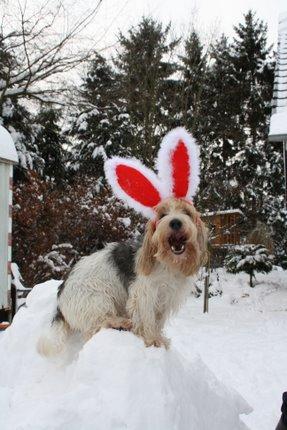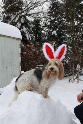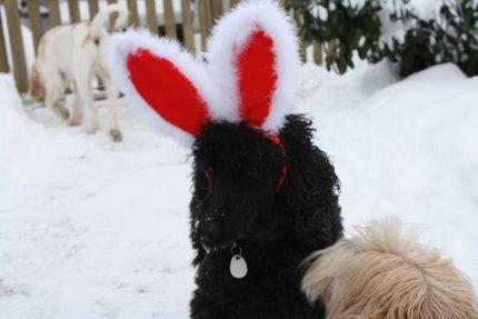 Sieht aus, als würde Lotte schon für Ostern proben, oder?