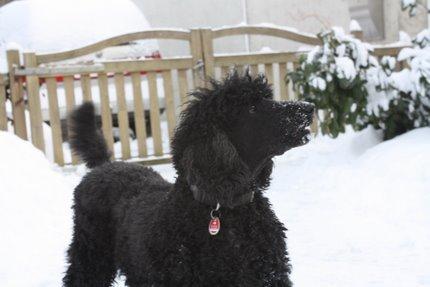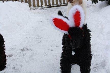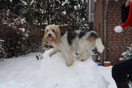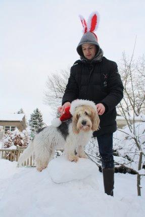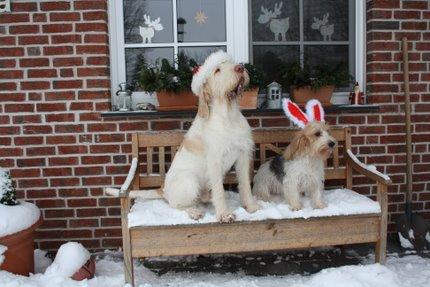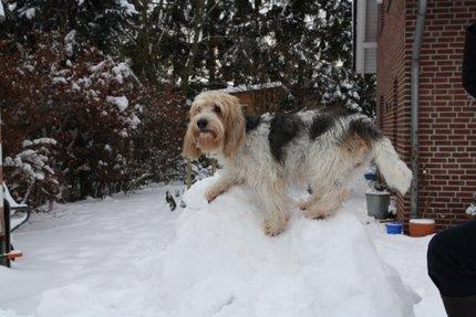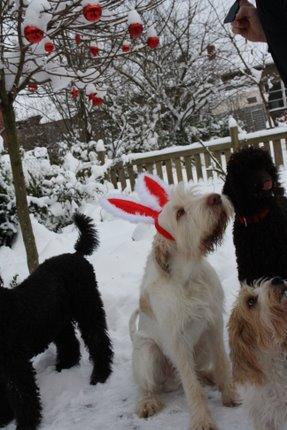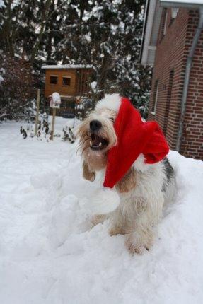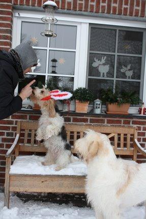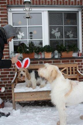 ... darauf meinte Lotti, sie würde die Mütze gerne nehmen, denn ihre Ohren wären schon wieder ganz kalt. Kein Wunder - diie schleifen ja auch im Schnee! Manchmal hat sie am Ende des Spaziergangs kleine Eiszapfen an den Ohren.