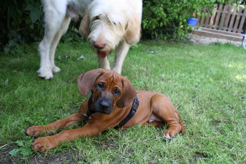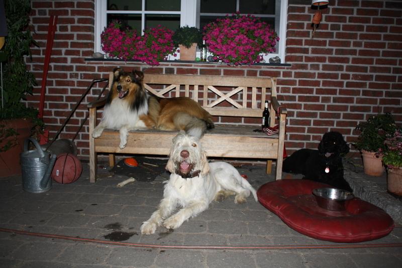 Heute war Tambo zu Besuch. Er ist knapp 9 Wochen alt und erst vorgestern aus Frankreich nach Brelingen umgezogen. Ich glaube, der versteht unsere Sprache noch gar nicht. Oder warum runzelt er immer so die Stirn?