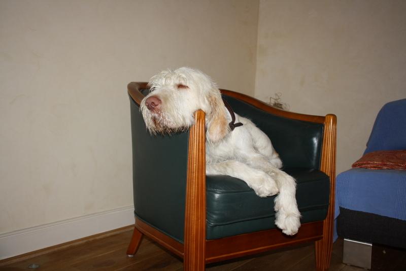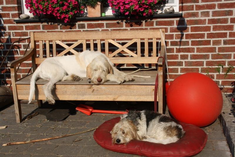 Das Wetter ist super zur Zeit. Lotte und ich können schon früh am Morgen ein Sonnenbad nehmen.