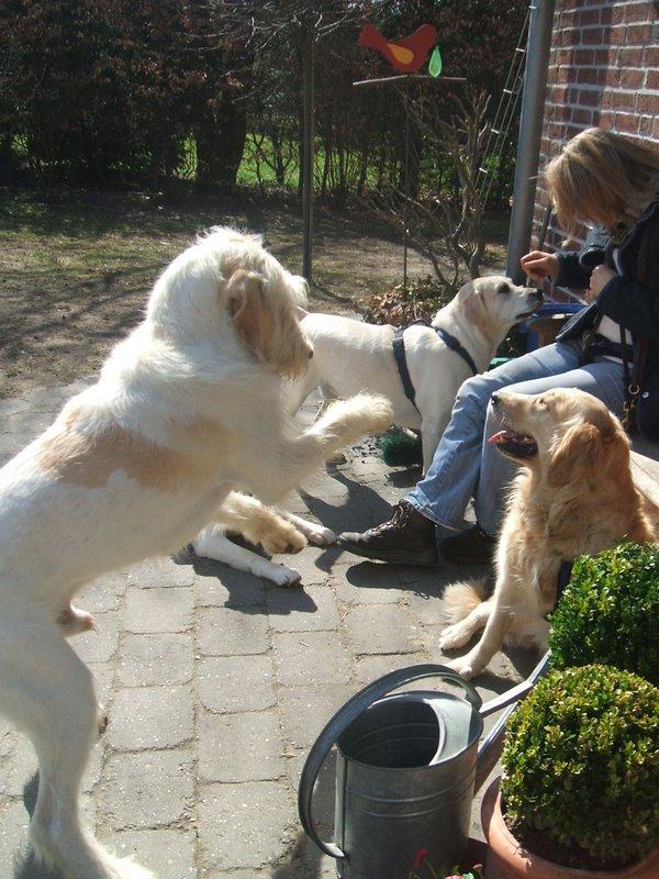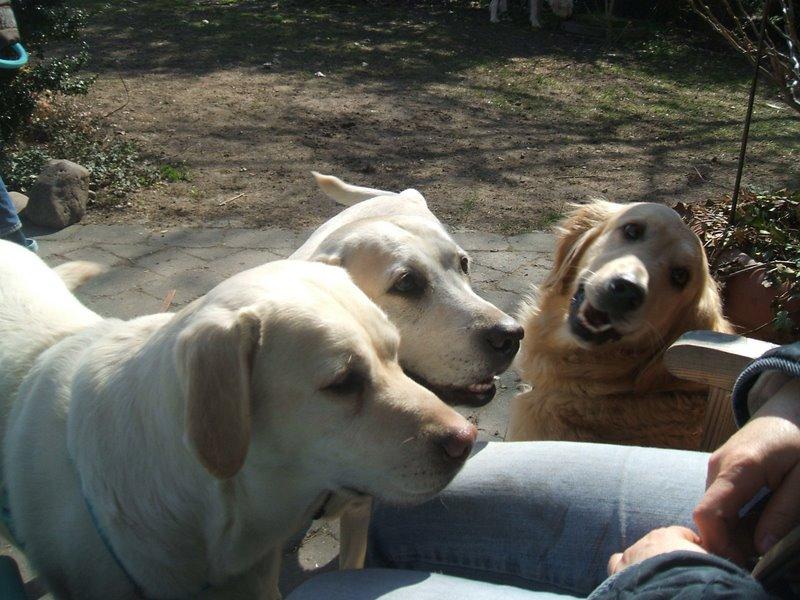 Heute waren Sally, Kais, Resi, Regina und Amber wieder zu Besuch. (Von links nach rechts aufgezählt.) Kais ist der neue Pflegehund von Regina und sucht eine neues Zuhause. Amber ist nicht mehr zu vermitteln. Sie bleibt bei Regina! Darüber freue ich mich besonders, denn in die süße Schnecke hatte ich mich ja sofort verliebt! Jetzt kann ich sie öfter sehen und darüber freue ich mich sehr!