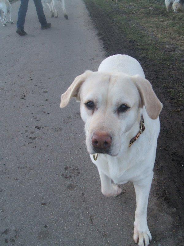 Heute Vormittag haben wir einen schönen Spaziergang in der Sonne gemacht. Ich hatte zwar kein Frühstück heute und mein Magen hat dauernd geknurrt, aber Caro meinte, ich habe mir irgendwas eingefangen und darf darum heute nix essen. Ok, ich hatte mich seit gestern einige Male übergeben, aber Hunger hatte ich doch trotzdem! Zum Hundeplatz durfte ich deswegen heute auch nicht. Echt blöd!