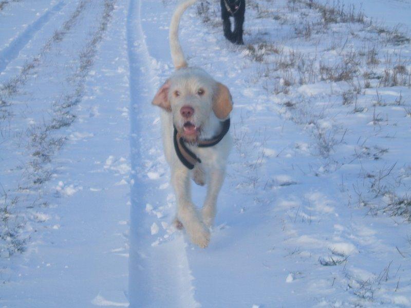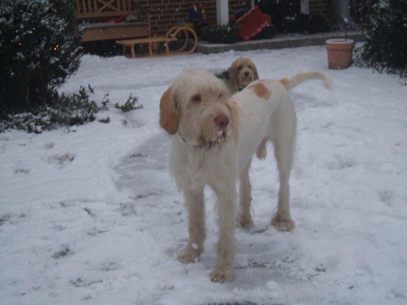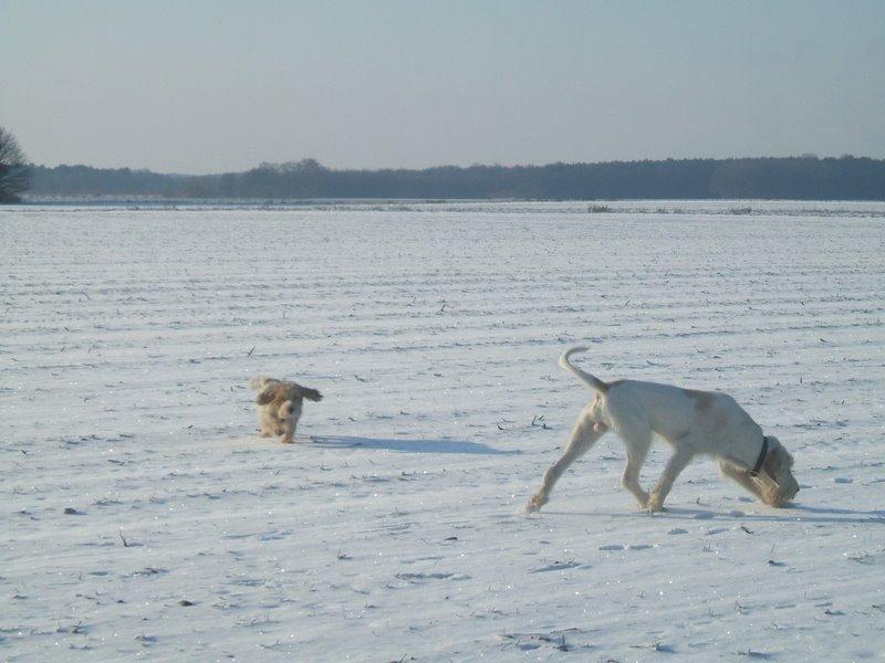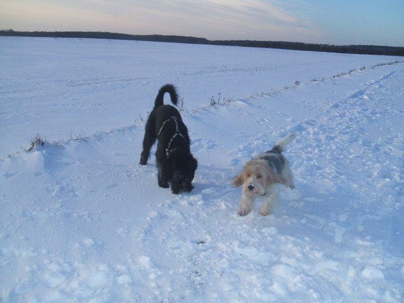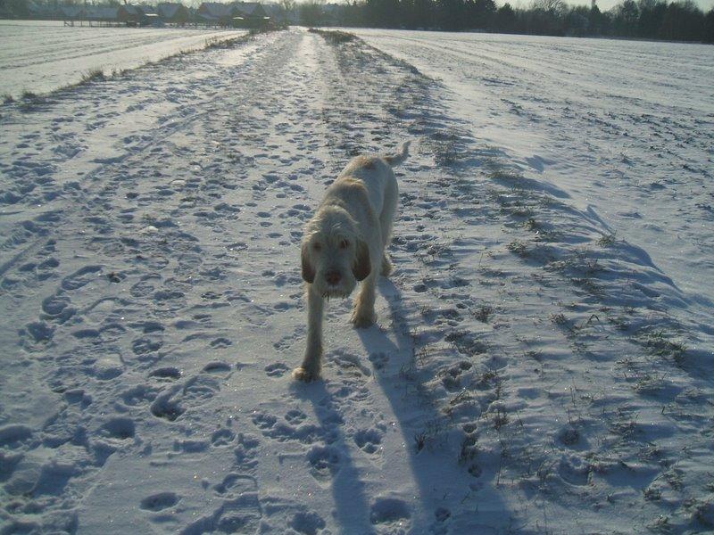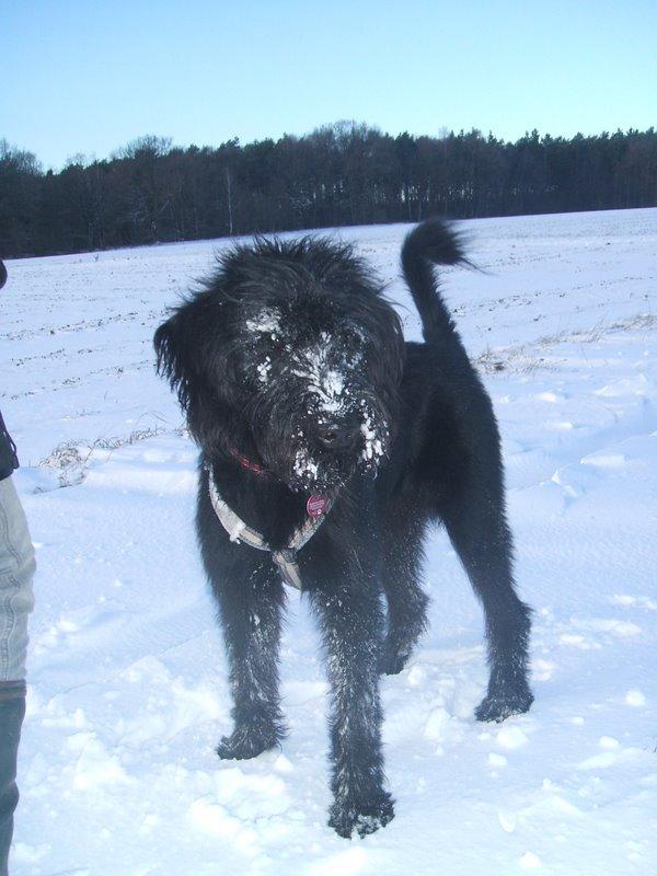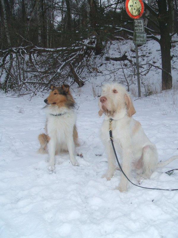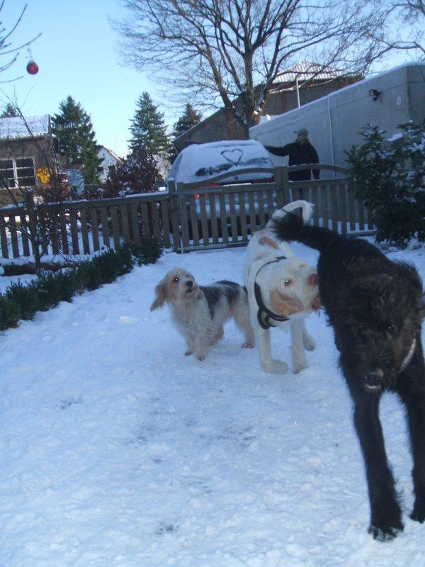 Zwischendurch musste ich an die Leine. Caro hat gemeckert, weil ich immer so weit in den Wald hinein gelaufen bin. Dabei wollte ich doch nur mal gucken, ob ich den Weihnachtsmann oder seine Rentiere irgendwo sehe.