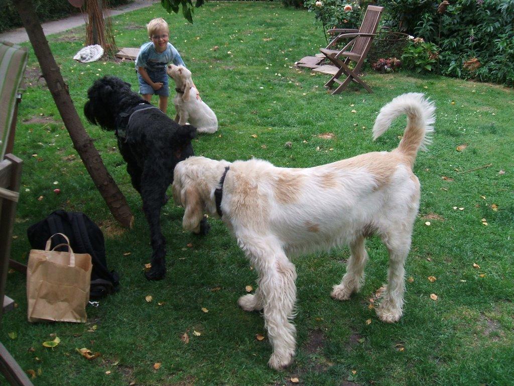 Heute hatte ich einen richtig tollen Tag: morgens war ich mit Lotte & Lenny im Wald und nachmittags war ich mit Lotte, Caillou, Emma & Sunny zuerst am Kiesteich, dann haben wir eine große Runde durch den Wald gemacht und zum Abschluß durften wir alle nochmal im Kiesteich baden. Abends habe ich dann noch ein wenig im Garten gespielt, bevor ich dann hundemüde in mein Bett gefallen bin.