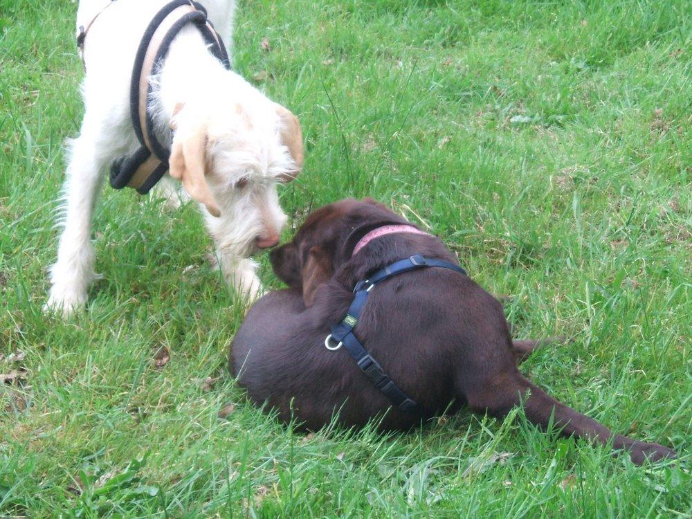 Das war ein sehr anstrengendes Wochenende! Am Samstag war ich noch zum Schnüffelkurs und habe meine erste Fremdfährte absolviert. Es hat gut geklappt - Frauchen war sehr zufrieden mit mir! Und die Geruchsunterscheidungen klappen auch ganz toll!