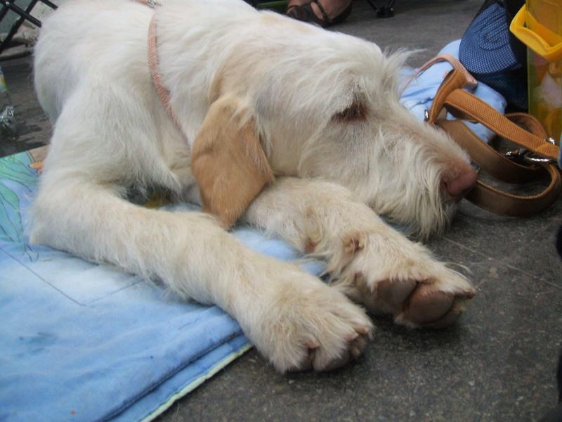 Heute war ich zum ersten Mal auf einer Hundeausstellung. - Ich wusste gar nicht, dass es sowas gibt. Und ich weiss noch immer nicht, warum es sowas gibt! Interessant war es ja schon, aber auch ziemlich anstrengend. Nach einem "Testlauf" und Bekanntschaft mit ganz vielen Hunden in unterschiedlichsten Farben, Größen und Ausstattungen, musste ich mich erstmal ausruhen.