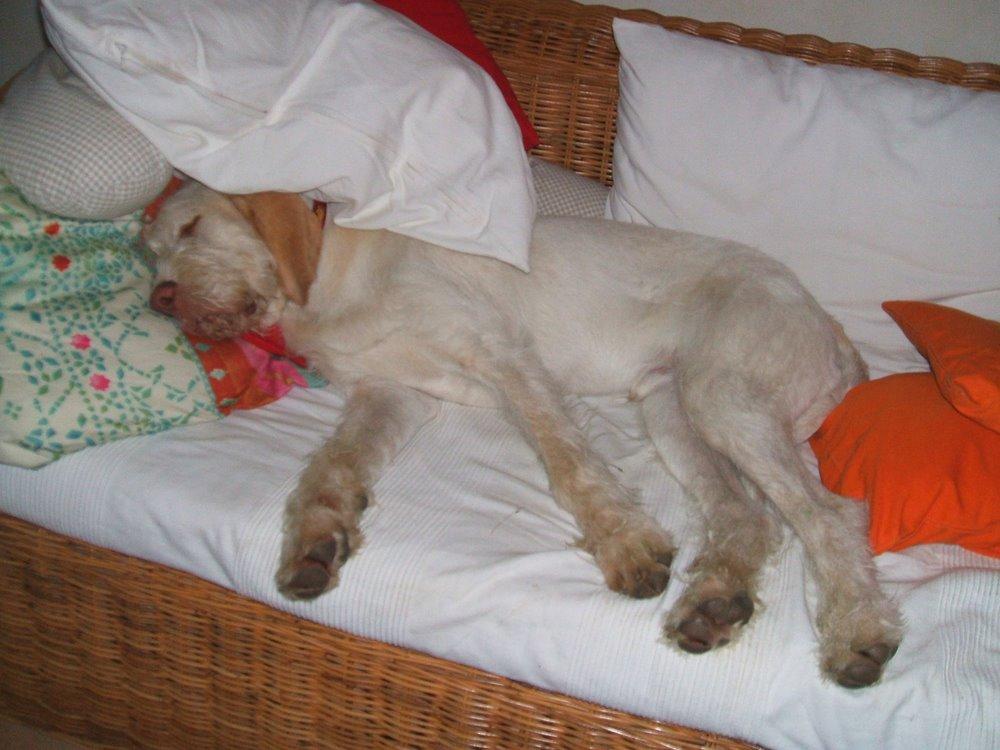 Heute hatte ich wieder einen anstrengenden Tag. Frauchen hat mir ein paar Fährten gelegt, die ich schnurstracks abgearbeitet habe und dann habe ich noch mit meinem Kumpel Lenni gespielt und Lotte geärgert. Abends wollte ich dann nur noch meine Ruhe haben.