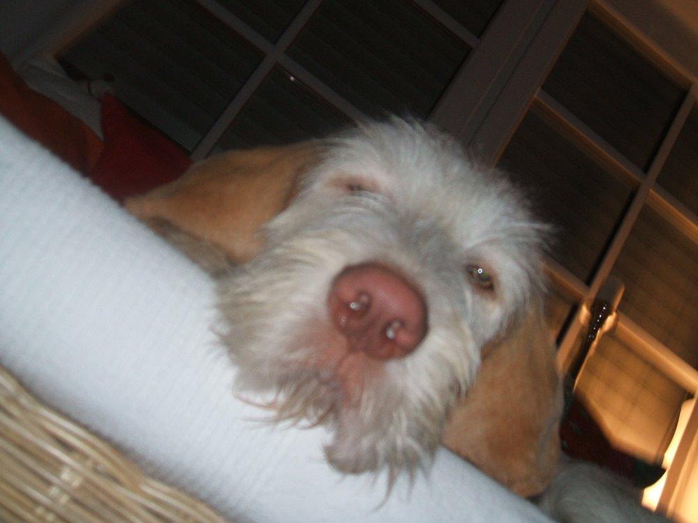 Weil Frauchen unterwegs war, Lotte und Janosch keine Zeit für mich hatten und ich auch nix Essbares gefunden habe, habe ich einfach mal das Sofa probiert. Frauchen war ziemlich sauer, aber ich finde, die ausgefranste Lehne sieht gar nicht so schlecht aus. Sie hat gesagt, vier Hunde seien nicht auf so eine dumme Idee gekommen. Offenbar bin ich ein besonders kreativer Hund.